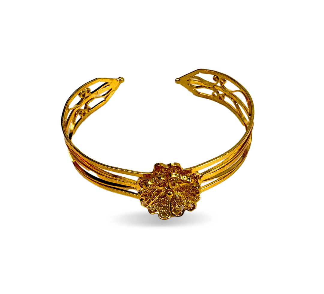 Made of bronze and copper with 24K gold plating, filigree technique.