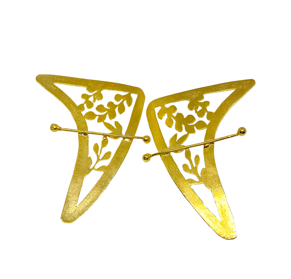 Bronze with 24k gold plating. Handcrafted piercing technique.