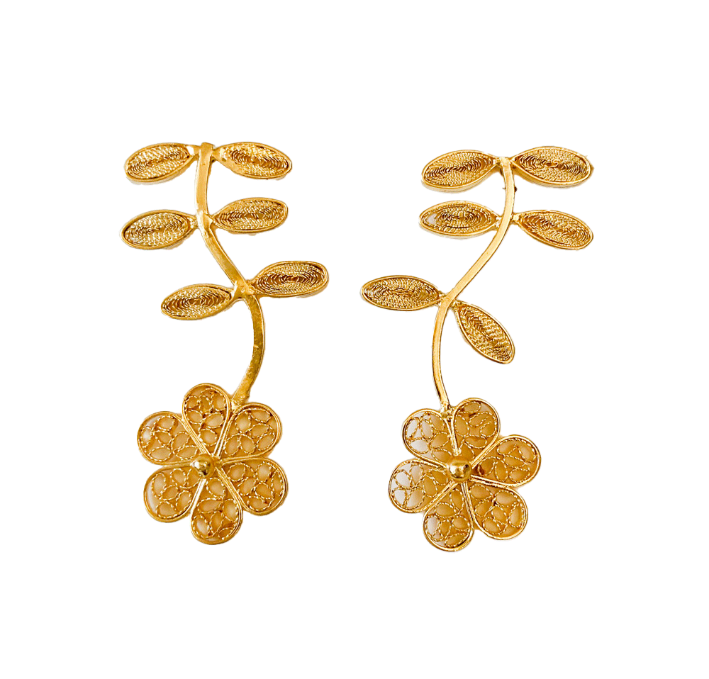 Bronze and copper threads with 24k gold plating. Crafted using handmade filigree technique.