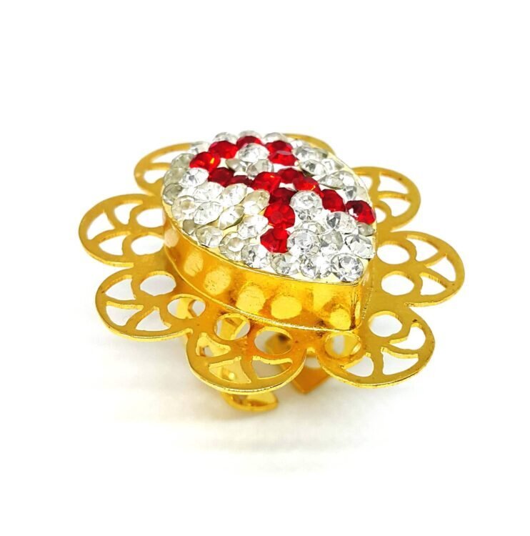Bronze, Swarovski, and 24k gold plating. Crafted using cut-out technique in bronze sheet and Swarovski setting in dual putty.