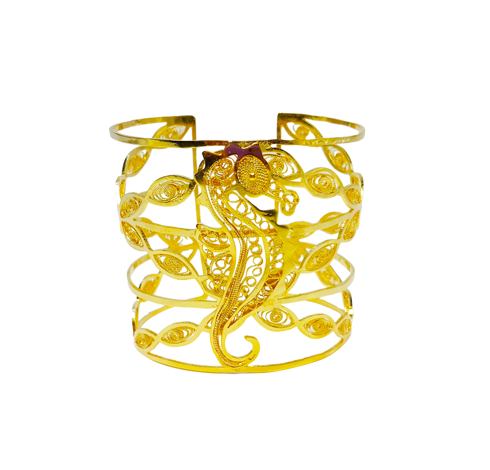 Bronze with Copper, 24k gold plating. Elaborated using filigree technique entirely handmade.