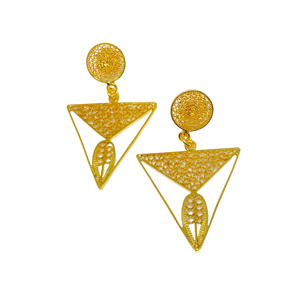 Bronze and copper threads with 24k gold plating. Crafted using 100% handmade filigree technique.
